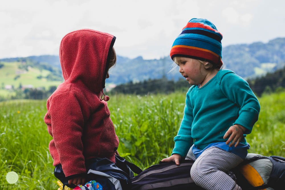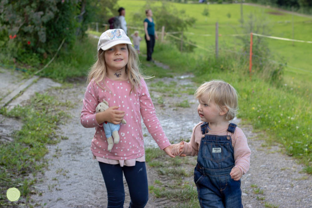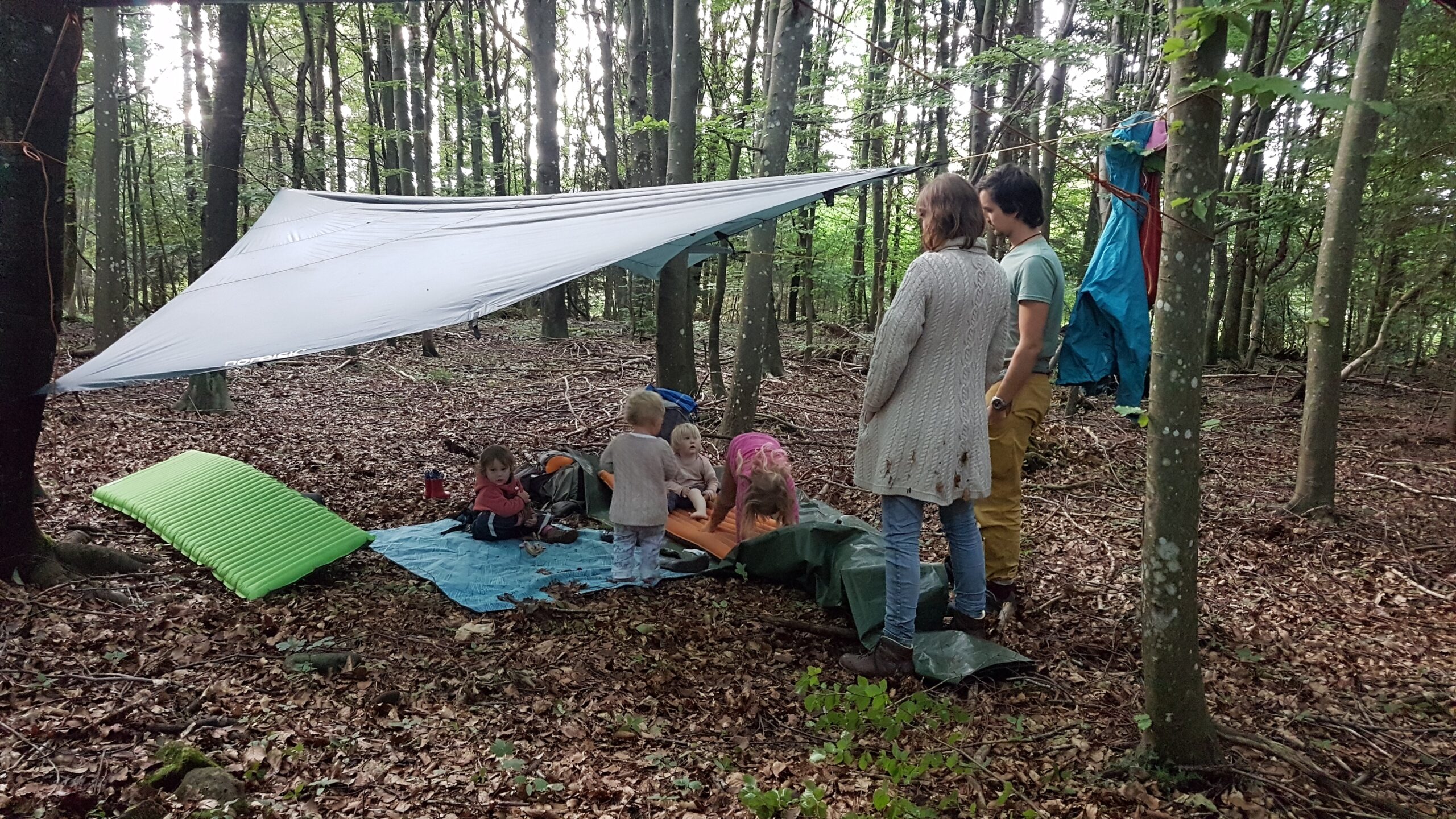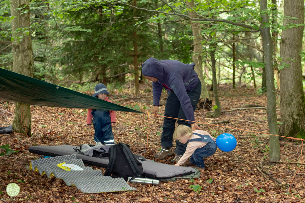 Unser erstes Familycamp Abenteuer findet an einem sonnigen Wochenende im Sommer 2020 statt. Rucksäcke, Blachen, Töpfe, Esswaren undundund werden glücklickerweise mit dem Auto zum Platz chauffiert. So können wir grossen und kleinen Abenteuerlustigen voll und ganz den Weg zusammen erleben… Und haben Zeit und Musse um Pfützen, Regenwürmer und Baumstrünke zu entdecken 🙂 Der vorgereckte Weg muss wegen unvorhergesehenen Erlebnissen neu erfunden werden – somit geht es spontan über Rossweiden, durch Gestrüpp, Wurzeln, mal rauf, mal runter, durch den Wald… Wir entdecken mit den Kindern Dachsbauten, Zwergenhöhlen – oder waren es jetzt Wichtel? 🙂