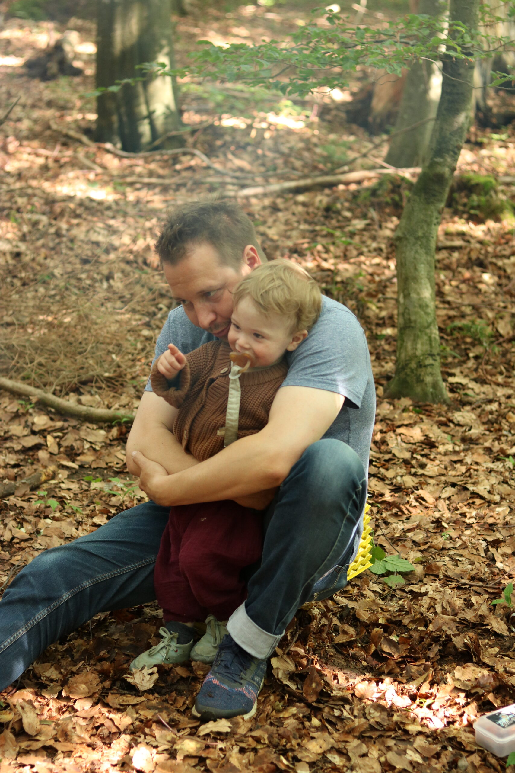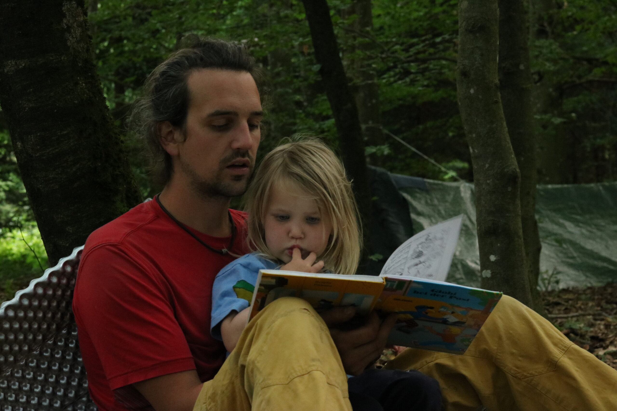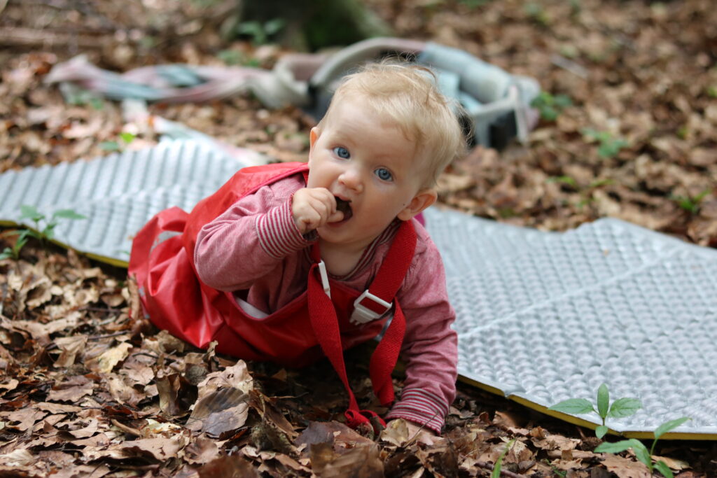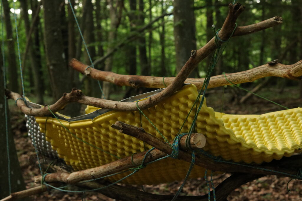 Kilian hat dann plötzlich die Idee, für die beiden kleinen Weltenentdecker eine Schaukel zu bauen. Es werden Äste gesammelt und zusammengebunden, zuerst mit einem Tuch ausgepolstert, was dann den Härtetest nicht allzu lang bestanden hat 😉 Die Z-Lite wird danach umfunktioniert und hält sogar die Doppel-Belastung aus 🙂 Ein Riesen-Highlight für die beiden!